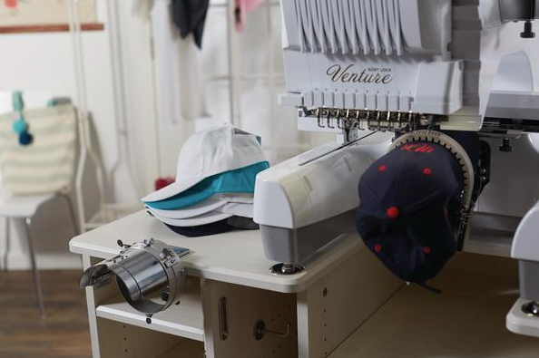 Embroider caps easier and quicker on a multi-needle embroidery machine with this optional cap hoop. This snap-on hoop allows you to embroider along the curve of any cap including flat brimmed hats. Quickly embroider caps up to 2 3/8" x 5 1/8" (60mm x 130mm). Includes frame, driver, and mounting jig.