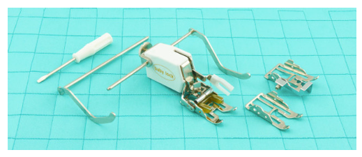 This exclusive foot includes feed dogs that control and guide multiple layers evenly. It includes three interchangeable soles, a standard sole, open toe sole and stitch-in-the-ditch sole, as well as two quilting bars to guide your top-stitching in either direction.