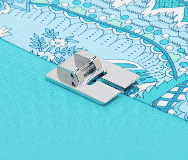 Use this foot for perfect topstitching and edge stitching over seams and un-level areas. This foot is also helpful when quilting to topstitch along the edge of binding where areas may not be level. This foot is used for uniform and precise topstitching. This foot is called bi-level because the underside of the foot is designed to compensate for different thicknesses of fabric.