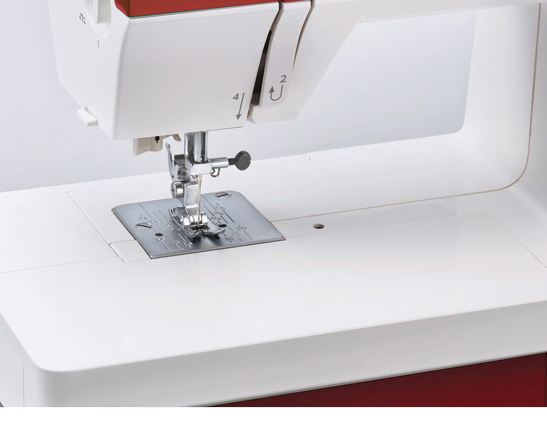 Re-imagine fashionable with the beautifully designed 1522. A generous sewing bed, solid metal frame and accessory storage compartment are just the beginning. With 22 creative stitches, 3 step foot pressure dial adjustment for sewing thin to thicker fabrics, built-in needle threader and convenient reverse lever, sewing your version of "fashion-forward is easy.