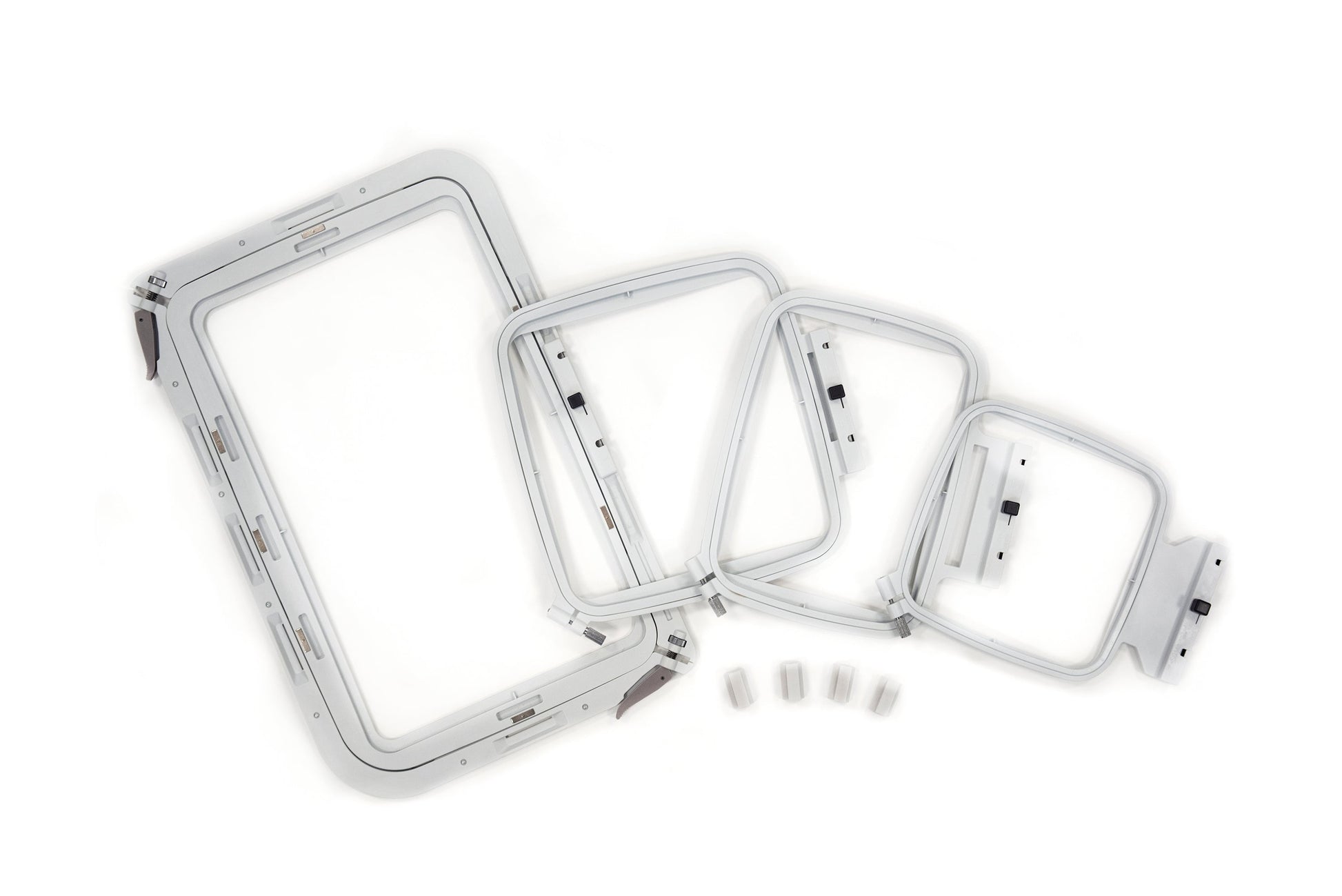 Standard Features: 180 designs (classic, floral alphabets, in-the-hoop monsters and Sashiko), 6 fonts, four embroidery hoops, extra wide extension table, USB port for importing and edited designs on screen.