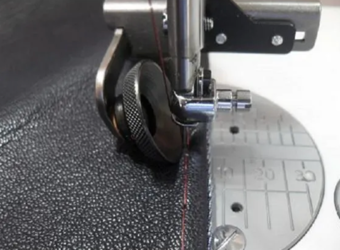 This innovative new foot can smoothly control materials such as leather and vinyl which are prone to catch in the feed dogs. When using this foot, the base of the needle is clearly visible, making your work easier.