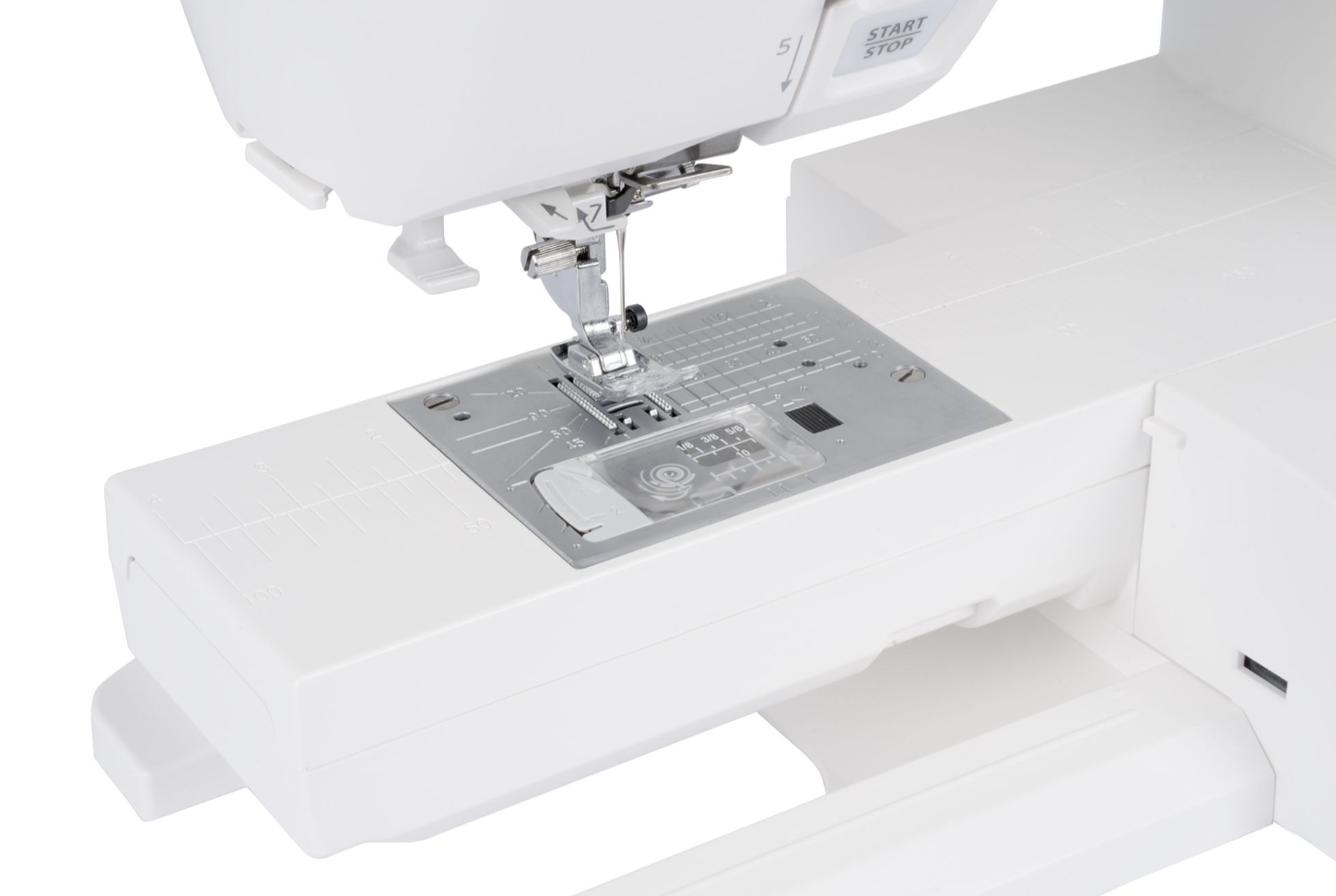 Janome’s Superior Feed System Plus features a 7-piece feed dog to ensure that even the thickest, multi-layer projects can move under the needle with precision and ease. The Skyline S3 AE’s patented needle placement accuracy includes special plate markings that indicate needle drop position, provide angle marks, and act as front-of-the-foot guides. In addition, the needle can be moved into 15 unique positions to get pinpoint accuracy for decorative stitching, applique, and free-motion quilting.